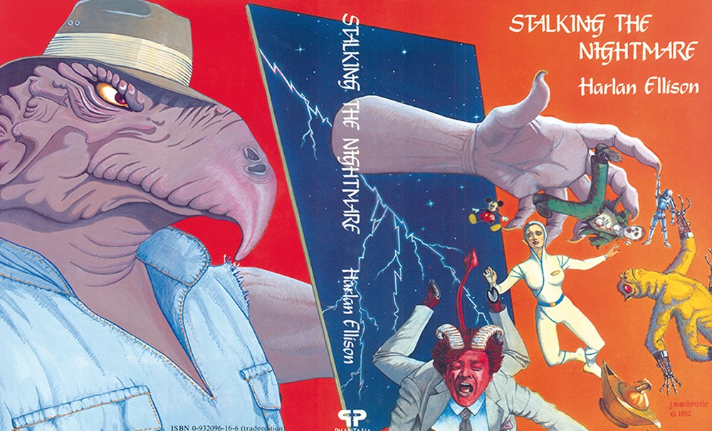 Harlan’s wit, insight, and energy inform all of these stories and essays. Are they uneven? Yes, of course they are. While I haven’t been given the “lawyer’s page”—that is, the dates of copyright on each short story and essay, along with where each was previously published—just the Xerox offprints I’ve been sent suggest that there is also a wide range of time represented in Stalking the Nightmare. Different typefaces and different return addresses tell part of the tale; the evolution in style tells part of it; the growth of confidence and ambition tells much more of it.